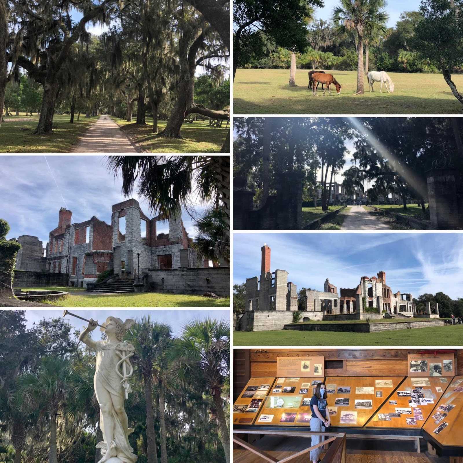 When we left Beaufort temps were in the 30’s, but somehow we managed to stay comfortable on deck (even without a cockpit enclosure) and had a great transit, mostly under sail, to St. Mary’s Inlet on the Florida/Georgia border. Though we have been near here a few times before, this is the first time that we dropped the hook in Georgia to explore Cumberland Island National Seashore. Loved it! The walk around the island was enchanting...moss-draped live oaks, wild horses, ruins of the Carnegie family mansion, and miles of pristine seashore.