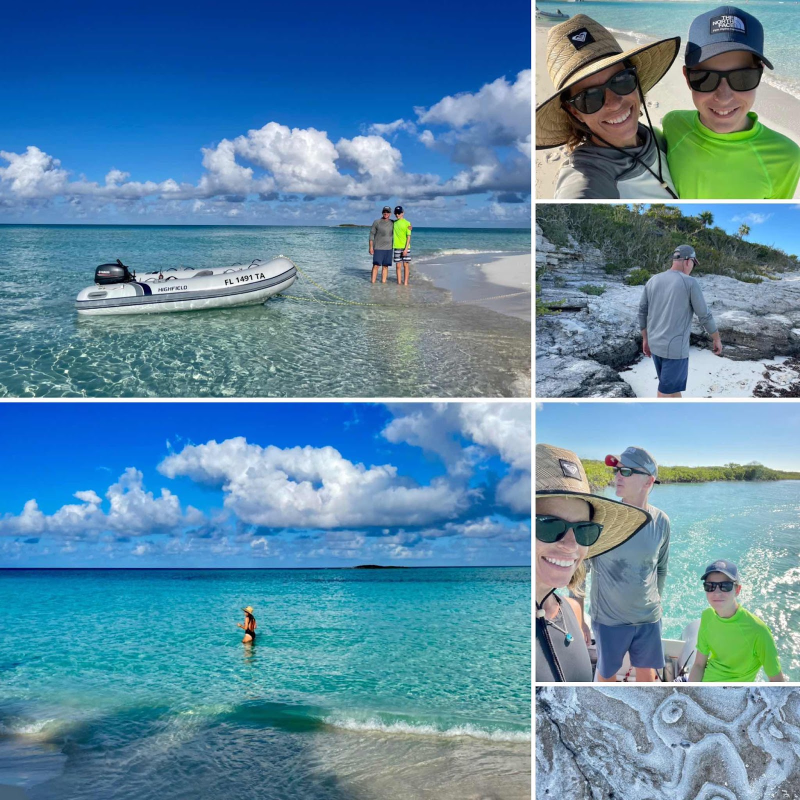 This was a new stop for us this year! We tried to edge our way into the northern moorings, but needed about another foot of water to make it work so we hit the southern moorings instead. Reviews noted uncomfortable surge there, but conditions were good and we had a very cozy night! We were also the only ones there until late in the afternoon. We took a dinghy ride to a northern cove and hiked up to the Russell Ruins, home to Loyalist settlers in 1785. From there we hiked out the eastern beach. While it was littered with plastic trash as it is a remote windward beach, it was beautiful. Trent and I swam while Frank explored the shoreline and found us a great piece of driftwood for our boat sign (more on that at the next stop!). On the way back to the boat we tucked into a mangrove lagoon right by our mooring. It was beautiful! And the entrance framed our boat perfectly. Conditions were so nice that I swam from the lagoon back out to the boat. While several tour boats stopped at the beaches near the mooring fields, it wasn't crazy and they were all gone well before sunset. Really, really enjoyed this new stop!
